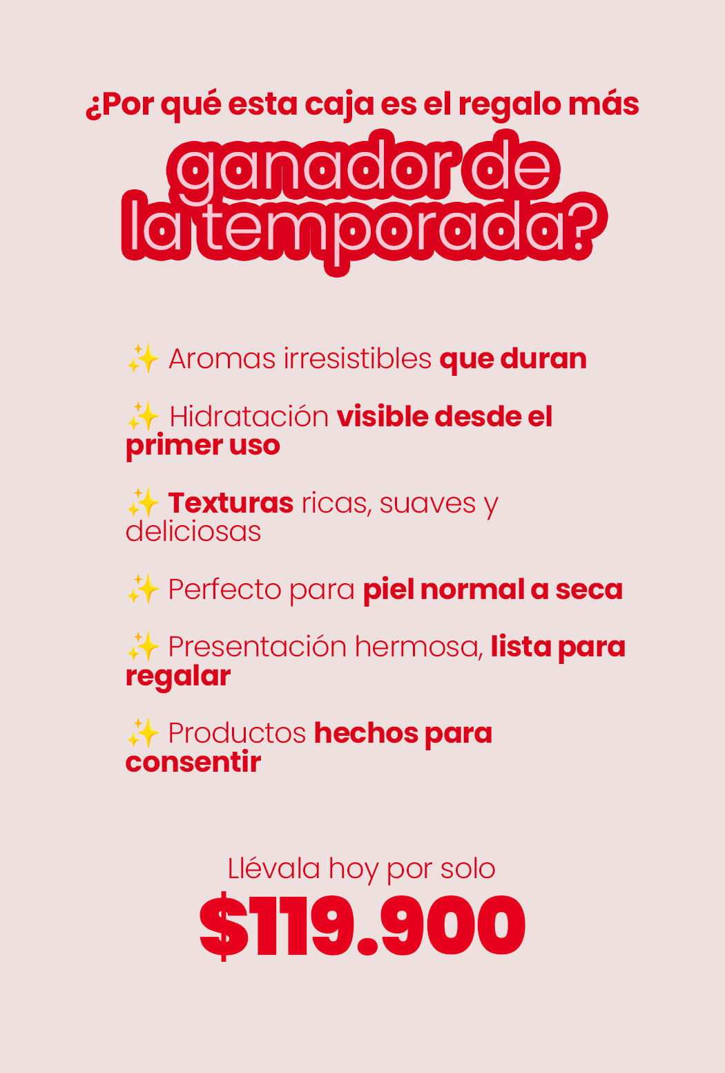 Sorprende con un kit lleno de brillo, aroma delicioso y mucha suavidad. ¡Es amor en forma de skincare! 💖🎄