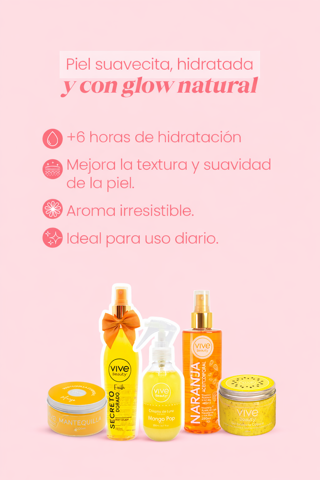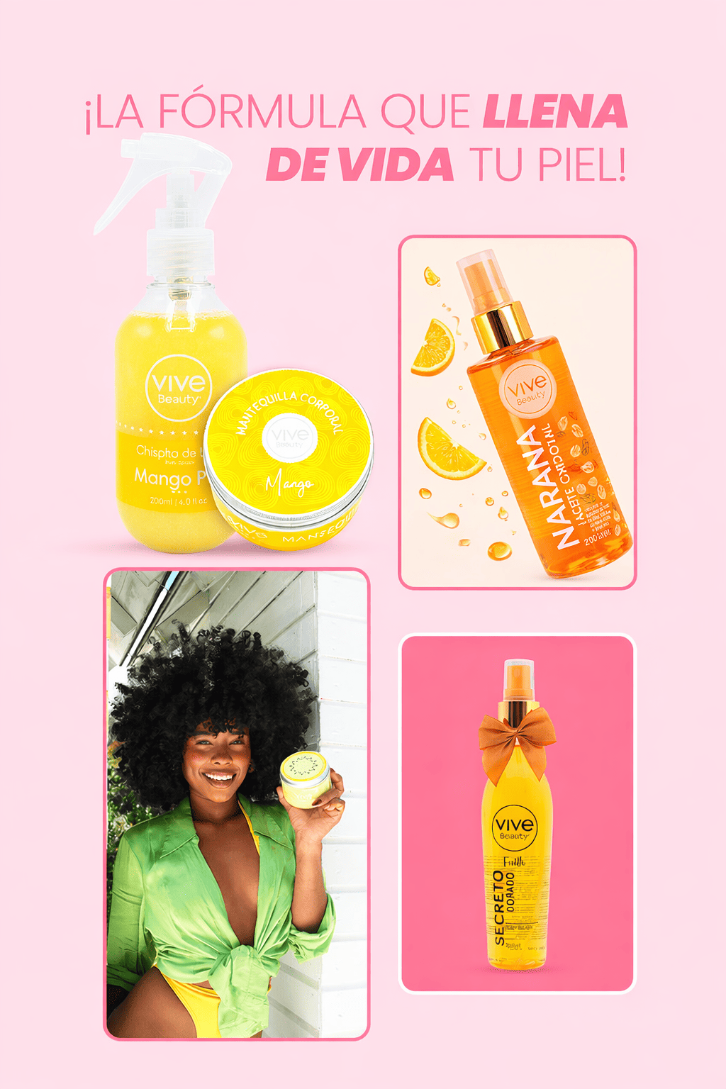- Mantequilla Corporal de Mango (200 ml): hidratación intensa con aroma frutal irresistible.