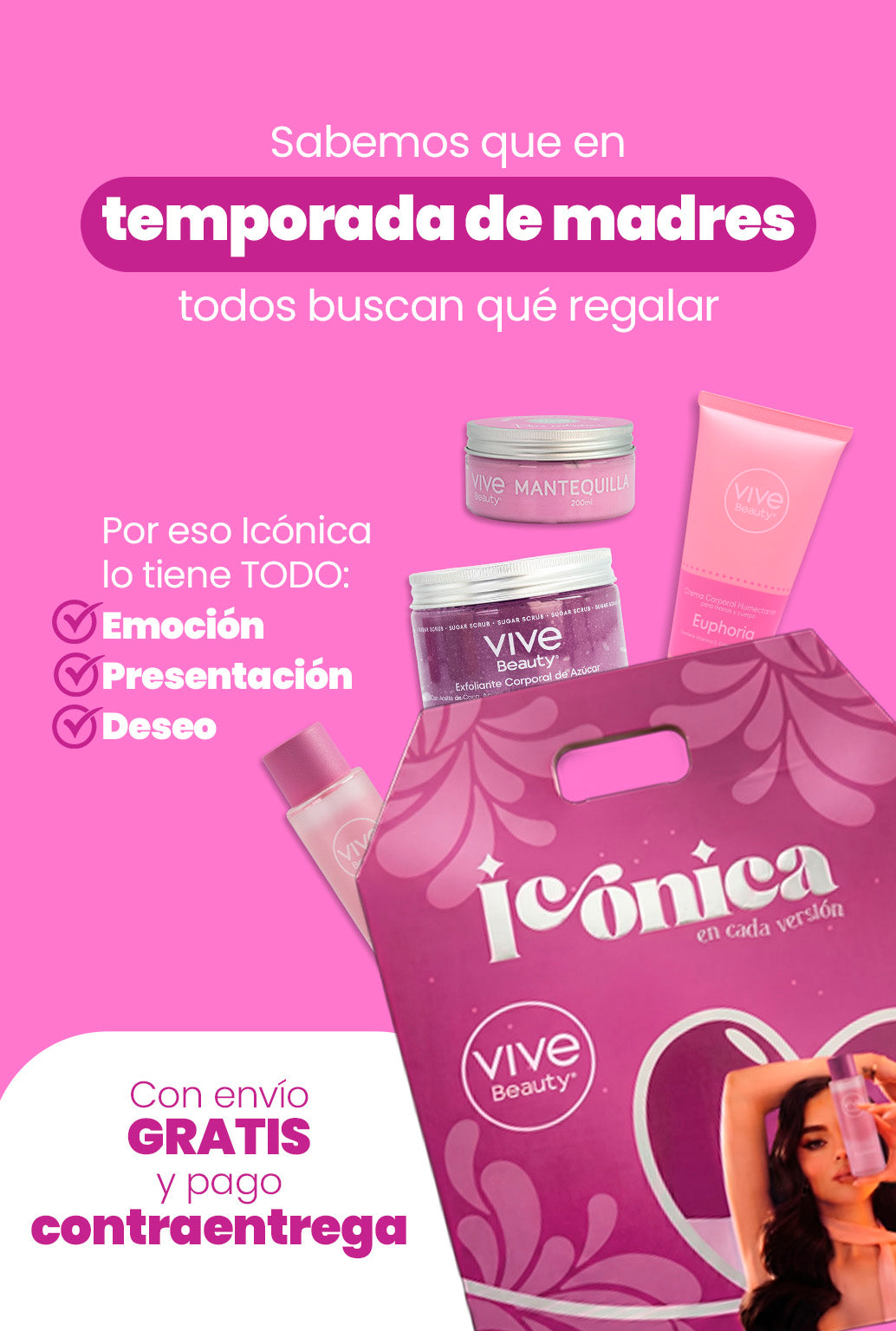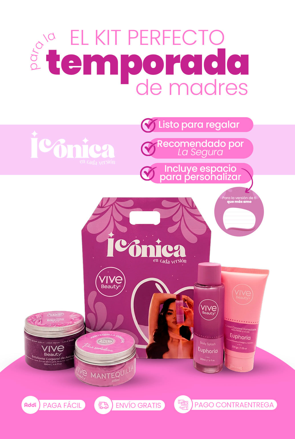 Cada Kit Icónica ofrece una experiencia de spa en casa con 4 productos esenciales de nuestra línea Euphoria, convirtiéndolo en la opción más atractiva para regalar en el Día de la Madre.